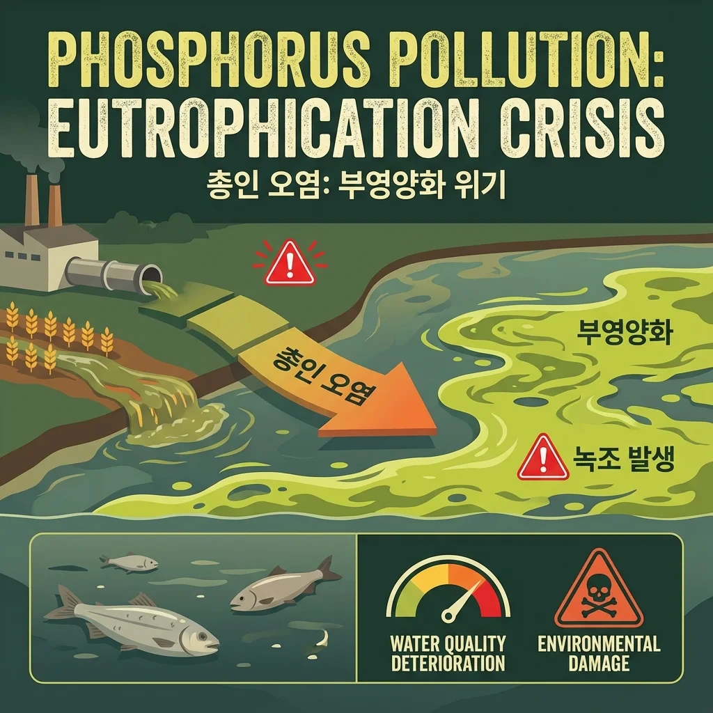 산업 폐수의 총인 배출량은 연간 약 1,200톤으로 추정되며, 주요 발생원은 식품가공(35%), 화학공장(28%), 전자부품(18%), 도금(12%), 기타(7%)입니다. 특히 식품가공 폐수는 인 농도가 20~80ppm으로 매우 높아 처리 난이도가 큽니다.