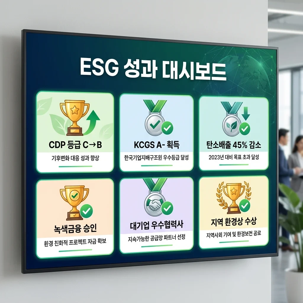 - 매출 증대: 대기업 협력사 ESG 평가 A등급 획득, 신규 계약 1.2억 원 추가