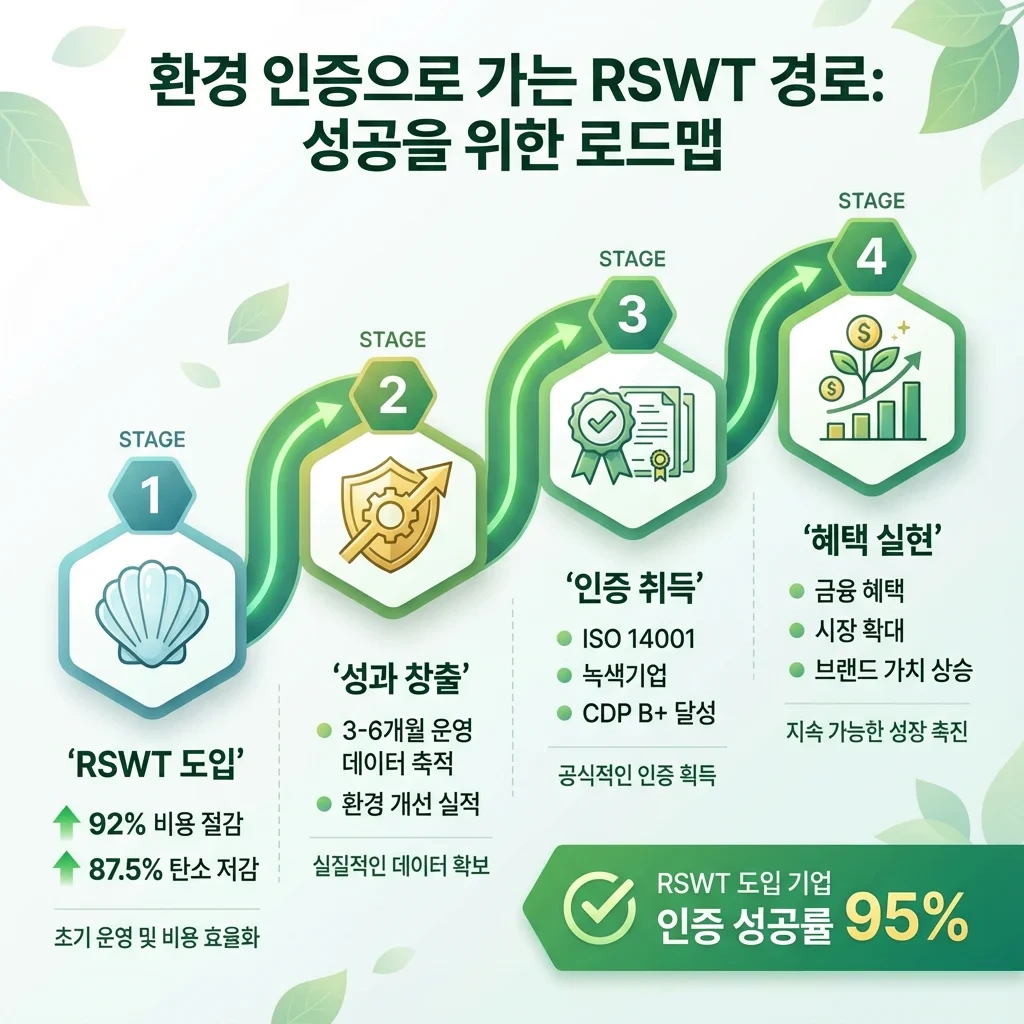 RSWT 도입으로 환경 성과를 만들고, 인증으로 혜택을 현실화하세요. 95%의 성공률이 입증합니다.