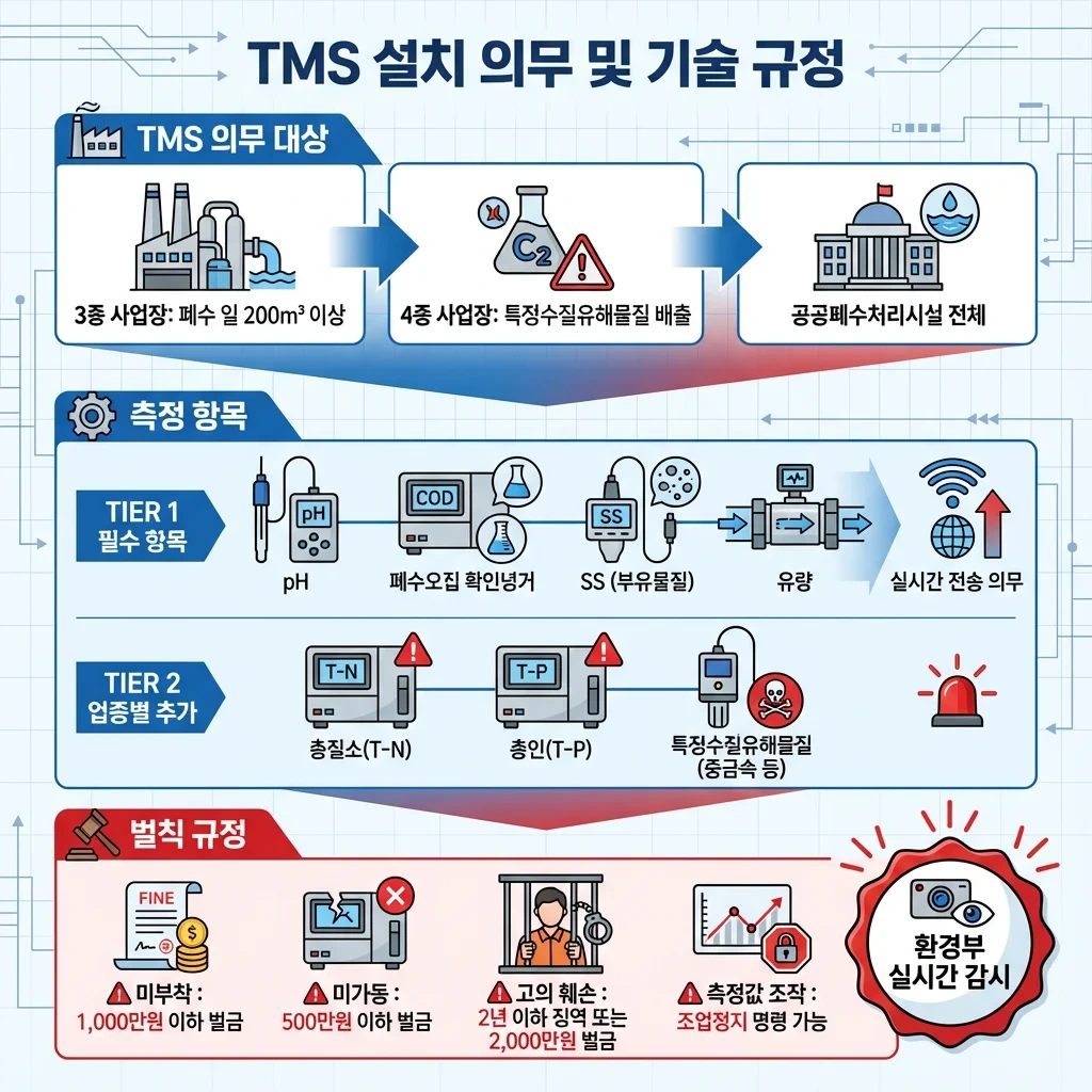 위반 내용: 수질자동측정기기(TMS) 설치 의무 불이행