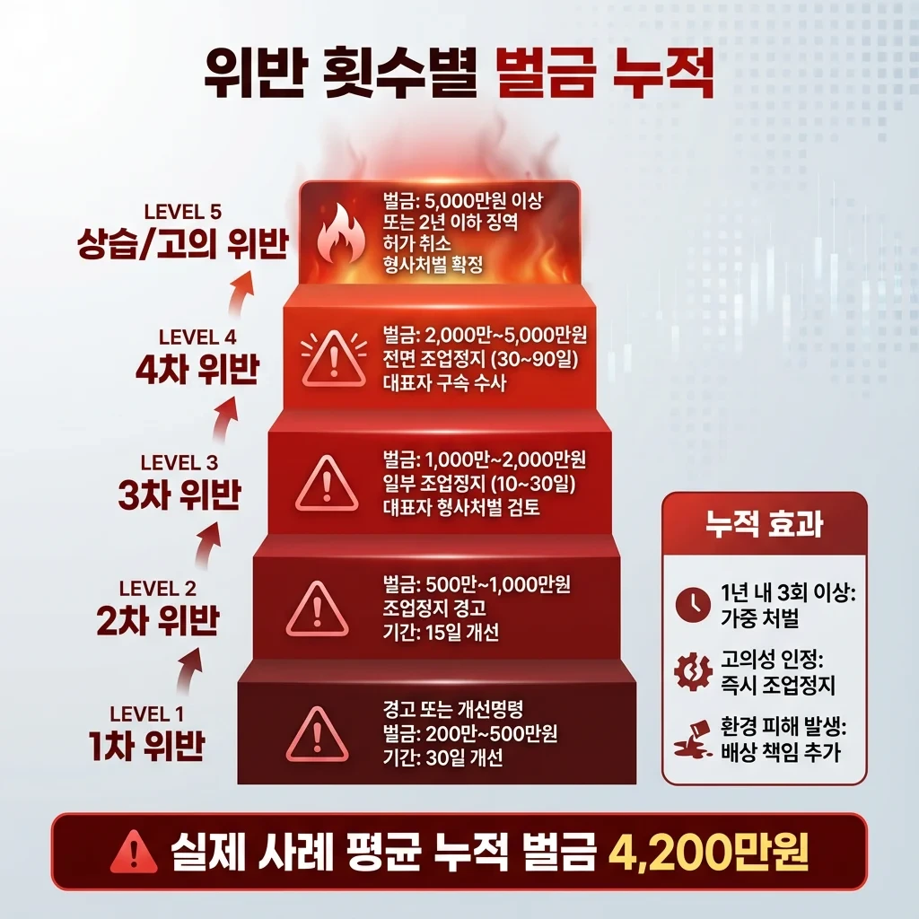 실제 사례: 평균 누적 벌금 4,200만 원 (경기 S전자부품 사례)